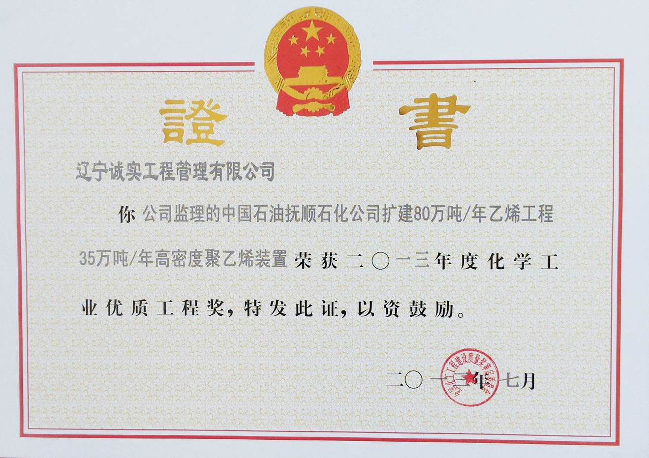 2013年化學工業(yè)優(yōu)質(zhì)工程獎(撫順石...