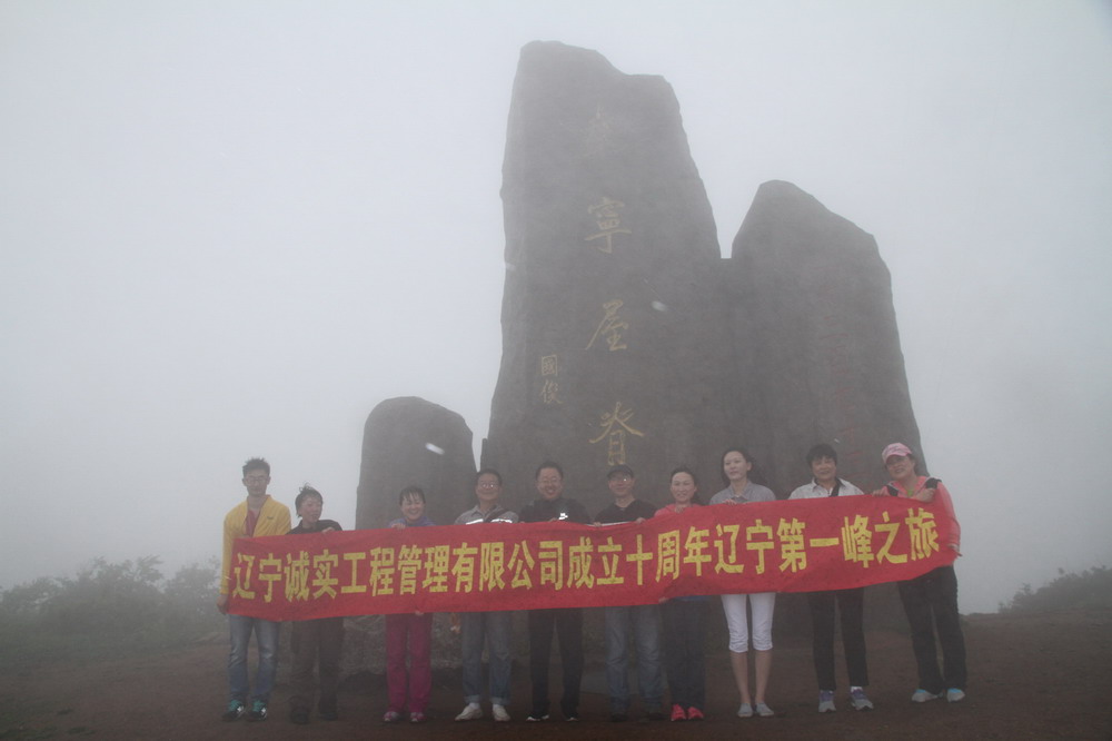 值此遼寧誠實工程管理有限公司成立十周年之際,公司黨委在建黨94周年前夕,聯(lián)合公司工會、團(tuán)委攜手圜球集團(tuán)公司組織了一次“遼寧誠實工程管理有限公司成立十周年遼寧第一峰之旅”。參加此次活動的人員有遼寧誠實機(jī)關(guān)部分成員以及圜球集團(tuán)公司機(jī)關(guān)部分成員。