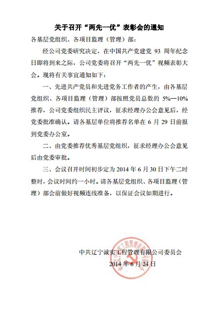 關于召開“兩先一優(yōu)“表彰會的通知
