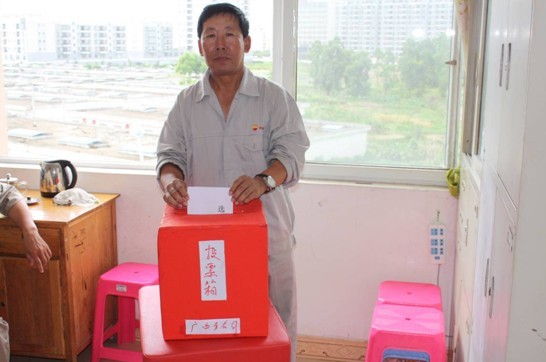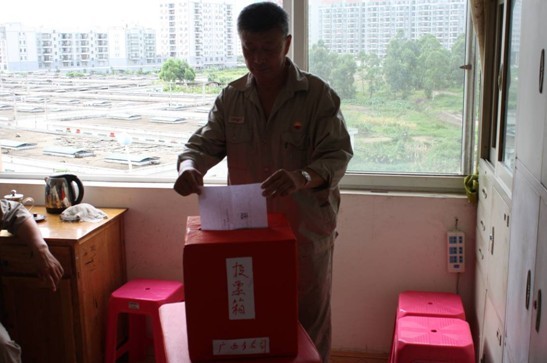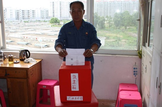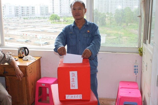 廣西視頻會(huì)場(chǎng)的黨員在投票選舉