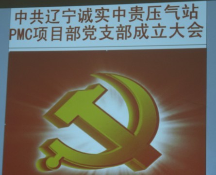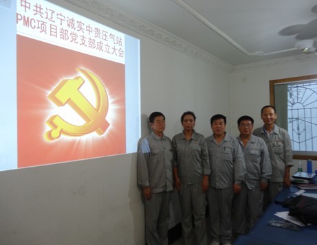2013年7月21日遼寧誠實(shí)中貴線壓氣站PMC項(xiàng)目部黨支部成立大會(huì)正式召開,大會(huì)由公司黨委委員趙樹環(huán)同志主持,首先介紹了了黨支部成立的意義和目的,然后進(jìn)入了大會(huì)流程。通過全體黨員民主評(píng)議、選舉,盛孝福同志當(dāng)選為PMC項(xiàng)目部黨支部書記,師興華同志當(dāng)選為黨支部組織委員,胡德林同志當(dāng)選為黨支部宣傳委員,趙樹環(huán)同志代表公司黨委對(duì)黨支部成立表式祝賀。黨支部全體黨員在黨旗下進(jìn)行了鄭重宣誓,最后由黨支部書記作表態(tài)發(fā)言。
