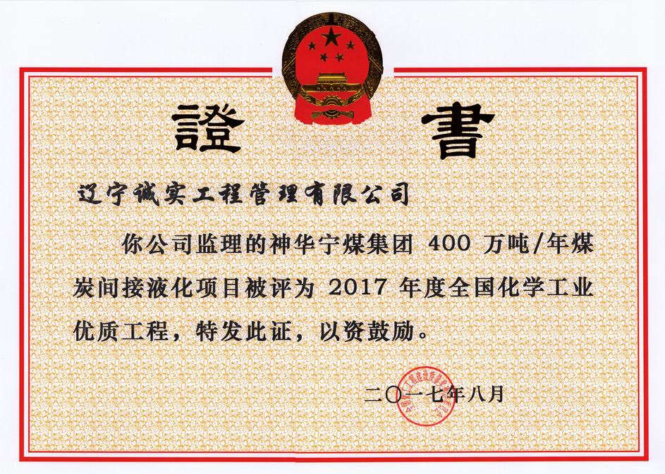 2017年全國(guó)化學(xué)工業(yè)優(yōu)質(zhì)工程(神華...