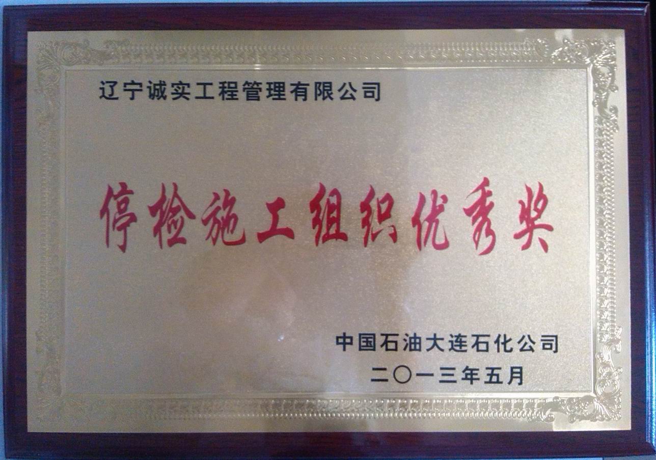 2013年大連石化停檢施工組織優(yōu)秀獎(jiǎng)