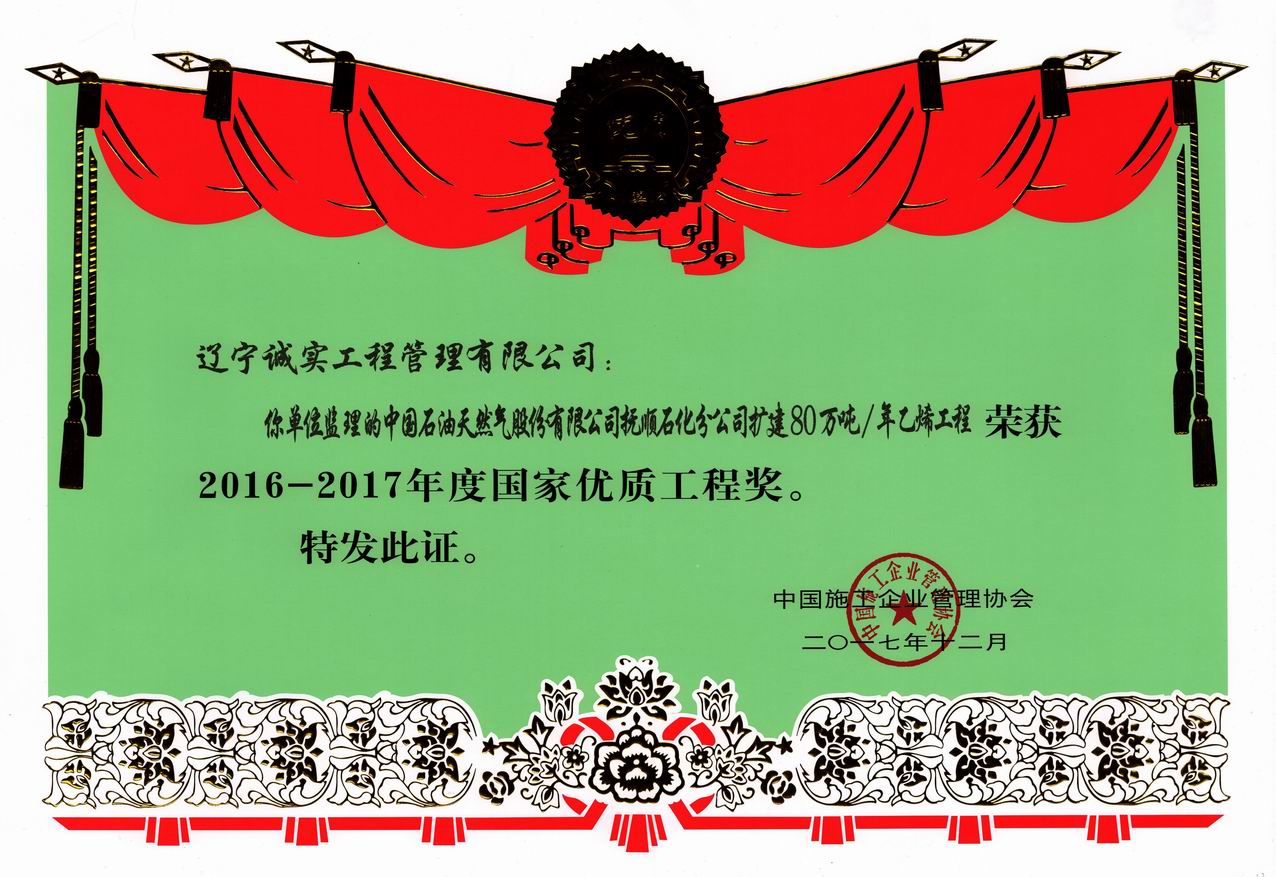 2016-2017年國家優(yōu)質(zhì)工程獎(jiǎng)(撫順...